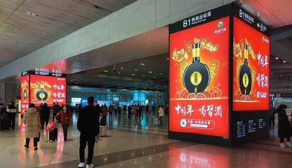 | 西安北高鐵站廣告案例圖-魔方柱 | 候車(chē)區(qū)-魔方柱刷屏 |