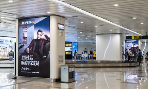 媒體位置/形式:一層國(guó)內(nèi)到達(dá)迎賓廳戶外包柱燈箱