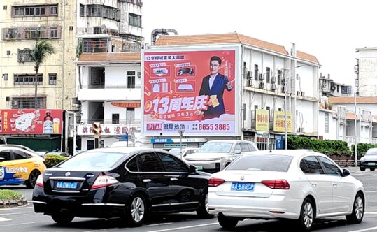 媒體位置優(yōu)勢: 該位置位于??谥鞲傻罏I海大道與秀英大道交叉口,是濱海大道去往西海岸必經(jīng)之處,周邊車流量比較大,廣告位視野比較開闊。 |