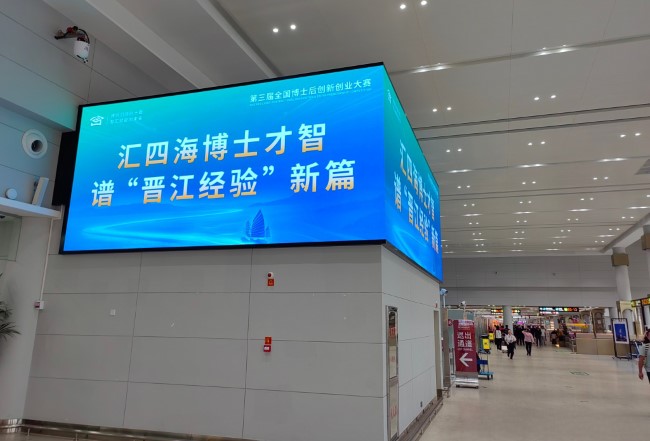 泉州晉江機(jī)場(chǎng)國(guó)內(nèi)出發(fā)2樓安檢特檢室上方三面LED大屏廣告