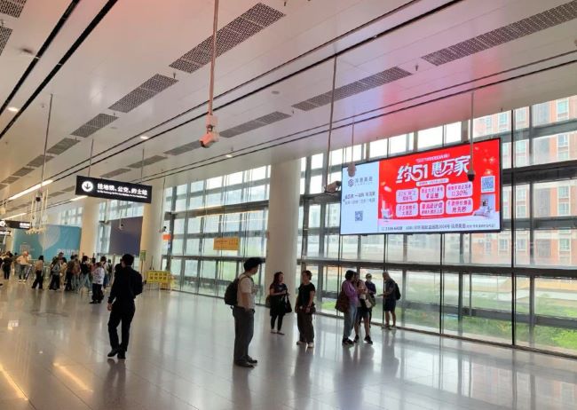 深圳福田口岸二、三樓出入境大廳墻面上方LED大屏廣告位于墻面高處,與旅客行進(jìn)方向自然契合,有效規(guī)避遮擋。單塊10.59㎡的尺寸在挑高空間內(nèi)形成視覺(jué)壓迫感,結(jié)合10塊屏組網(wǎng),總面積達(dá)105.9㎡,構(gòu)建立體化視覺(jué)矩陣旅客。通關(guān)過(guò)程中平均停留時(shí)間較長(zhǎng)。福田口岸入境廳與出境廳LED大屏套裝廣告雙點(diǎn)位布局,同步觸達(dá)雙向客流,單日總曝光量超1200次/天。