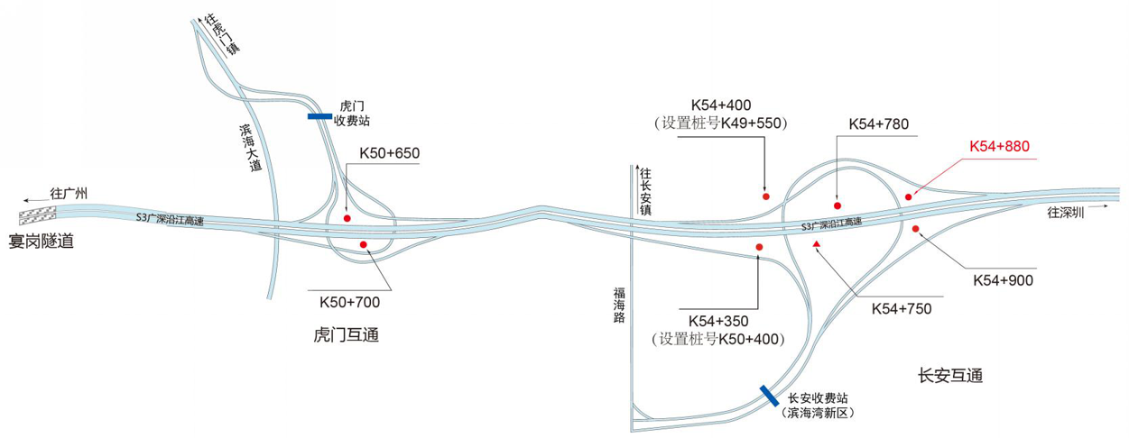 ?????? 廣深沿江高速公路項(xiàng)目起點(diǎn)接廣州黃埔雙沙107國(guó)道(黃埔東路),沿途銜接?xùn)|二環(huán)高速公路、番莞高速公路(虎門二橋)、?;⒏咚俟坊㈤T港支線二期(規(guī)劃)、虎門大橋、?;⒏咚俟烽L(zhǎng)安港支線(規(guī)劃),終點(diǎn)順接廣深沿江高速公路深圳段、深港西部通道直達(dá)香港。項(xiàng)目途經(jīng)廣州市黃埔區(qū),東莞市麻涌鎮(zhèn)、洪梅鎮(zhèn)、道滘鎮(zhèn)、沙田鎮(zhèn)、虎門鎮(zhèn)、長(zhǎng)安鎮(zhèn),工程起于廣州黃埔區(qū)黃埔大道雙崗天橋,止于長(zhǎng)安東寶河,設(shè)官田、開(kāi)發(fā)、南崗、麻涌、立沙島、洪梅、沙田、虎門港(預(yù)留)、威遠(yuǎn)、虎門、長(zhǎng)安等11處互通立交。