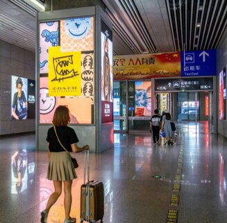 南京南高鐵站廣告案例圖-魔方柱 |