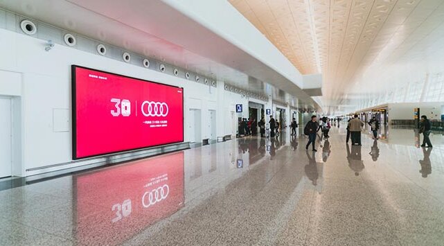 T3航站樓聚集所有國內(nèi)國際出發(fā)航線,乘客更加集中。媒體位于出發(fā)層值機(jī)大廳中部,旅客辦理登機(jī)牌必留之地,雙面覆蓋,是值機(jī)大廳唯一的媒體形式。