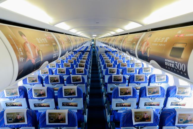南方航空飛機(jī)客艙內(nèi)座椅頭枕巾廣告
