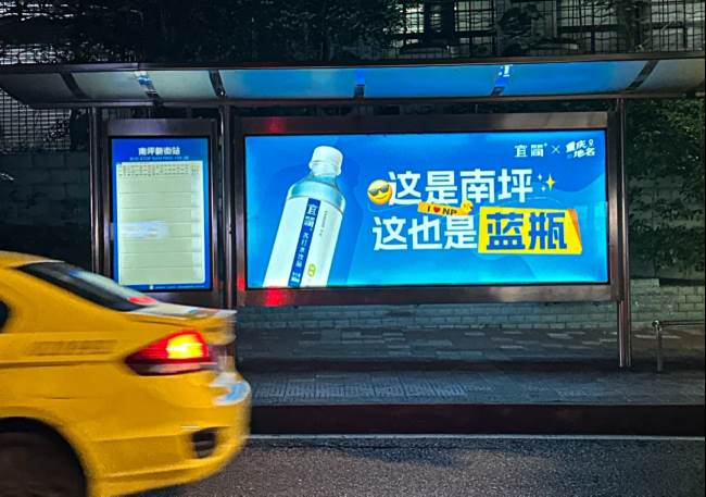 重慶公交站臺燈箱廣告投放案例,重慶巴士候車亭站牌廣告價格