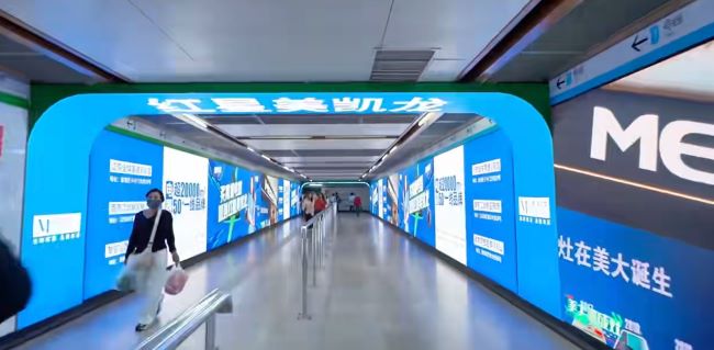 南京地鐵南京站換乘通道墻面廣告多媒體組合視覺統(tǒng)治力,4塊LED屏支持視頻內(nèi)容,在昏暗通道中形成強光效焦點,8塊燈箱沿通道線性分布,構(gòu)建"視覺長廊",3座拱門結(jié)構(gòu)強化區(qū)域過渡感,自然分割不同廣告內(nèi)容板塊。針對1號線轉(zhuǎn)3號線、3號線轉(zhuǎn)1號線雙向客流,多媒體組合確保各方向乘客均能接觸2-3個廣告點位。