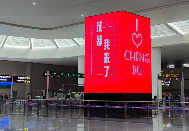 成都地鐵天府機(jī)場(chǎng)站LED包柱大屏:空鐵聯(lián)運(yùn)的視覺(jué)焦點(diǎn)