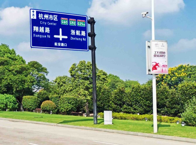 ?杭州蕭山機場廣告投放案例圖-戶外路燈桿燈箱