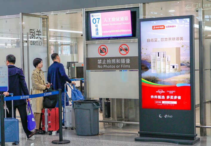 南京機場廣告投放案例圖-安檢框 |