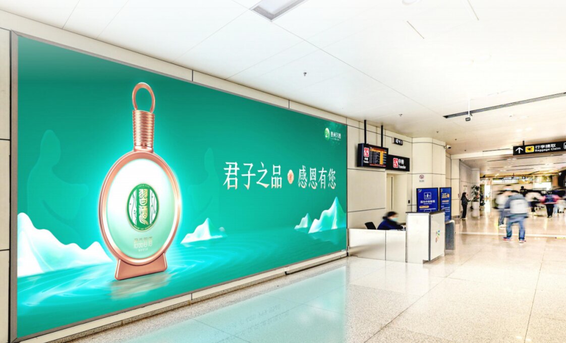 媒體位置/形式:T2國際到達主通廊聯(lián)檢區(qū)域墻體燈箱
