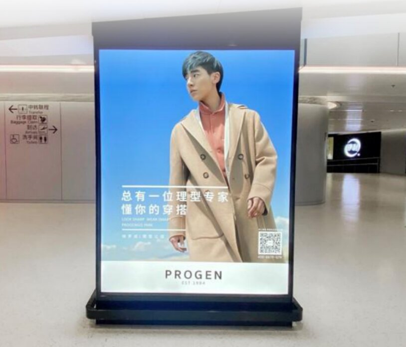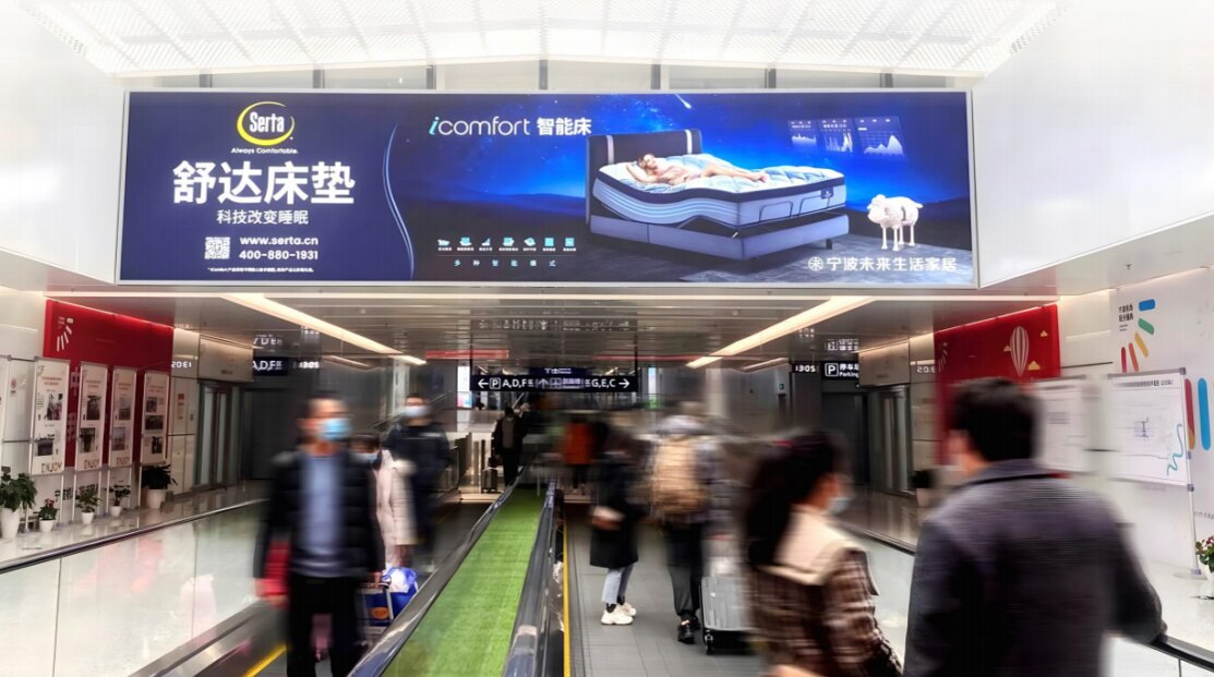 媒體位置/形式:T2國際到達通廊下滾梯迎面站立式燈箱