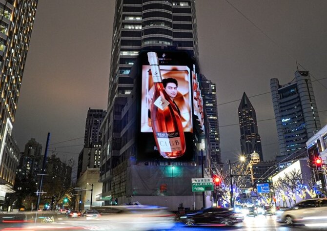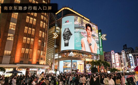 雙側(cè)大面積對稱呼應(yīng)的高精度內(nèi)光燈箱廣告畫面極具視覺沖擊力,成為淮海路一大焦點,廣告價值極高。