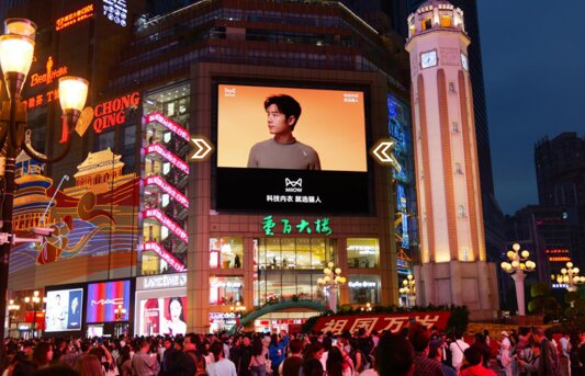 媒體位置優(yōu)勢: 地理位置優(yōu)勢:位于重慶商圈TOP1觀音橋步行街入口處,坐擁千億級商圈黃金席;丁字路口車流密集,屏前廣場聚集人群且視角絕佳;媒體周圍10大購物中心,1KM范圍內(nèi)住宅小區(qū)110個,成熟商業(yè)樓56個。 覆蓋人群優(yōu)勢:覆蓋人群包括中高端消費人群、旅游人群、商務人士等,是重慶消費與發(fā)展的主力軍,日均覆蓋人車流量超70萬,人車流密集。2023年中秋國慶8天假期,觀音橋商圈日均人流量超87萬人次,為北京等傳統(tǒng)商圈的2倍。 屏體自身優(yōu)勢:媒體面積達到1024.1m2,位置高度適中,超高清折角屏是制作裸眼3D的不二之選。西南朝向人車流巨大,帶給人群超強視覺沖擊,實現(xiàn)視線捕捉率最大化。觀音橋商業(yè)街入口的絕佳位置賦予屏幕極大的商業(yè)價值,可以滿足品牌高需求,同時彰顯品牌價值。 |