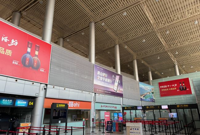 唐山機場一層出發(fā)大廳值機柜臺上方大牌廣告