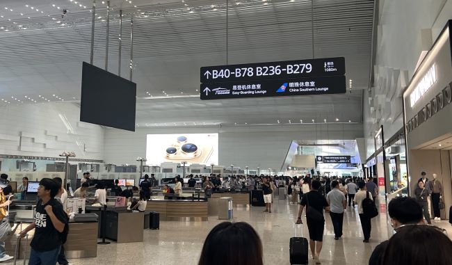 廣州機(jī)場T2國內(nèi)出發(fā)安檢區(qū)空中超大墻體燈箱廣告