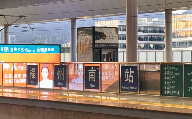 福州南站站臺(tái)燈箱廣告投放,福州南高鐵站大屏廣告案例