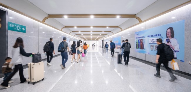 惠州南站出站通道兩側墻面燈箱廣告7塊大型燈箱沿通道兩側分布,套裝組合發(fā)布既可在有限預算內實現重點覆蓋,也可通過多組采購形成更密集的展示陣列,增強了品牌形象的展示氣勢。墻面燈箱在通道環(huán)境中具有視覺上的突出性,較大的展示面積確保了廣告內容在有效距離內的清晰辨識。這種連續(xù)設置的燈箱組能夠在旅客出站過程中形成持續(xù)的視覺引導,使品牌信息得以在相對封閉的通道空間內實現有效傳遞。