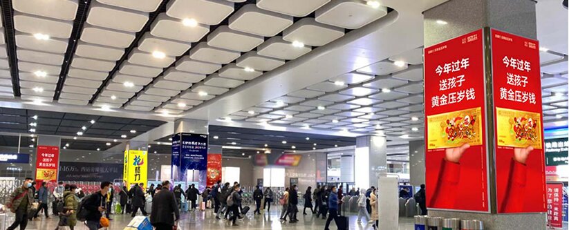 重慶西站出站大廳四面包柱燈箱廣告