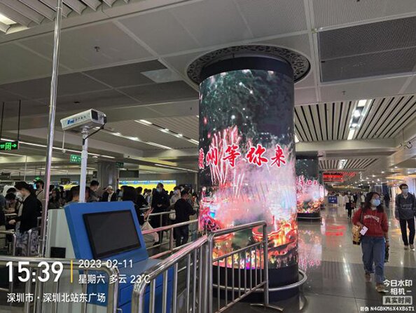 深圳北站換乘區(qū)包柱LED廣告價(jià)格,文旅政府深圳北高鐵站廣告案例