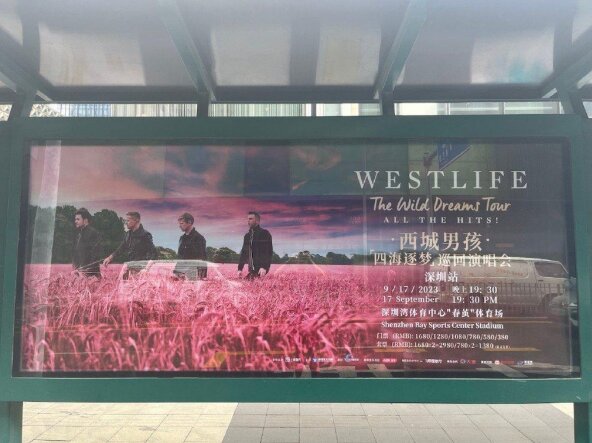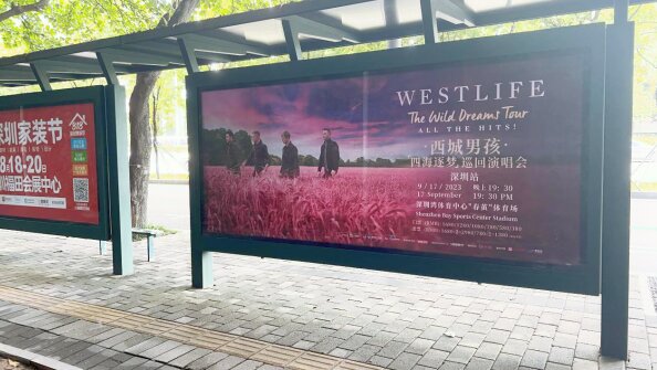 深圳公交候車亭廣告2周起做,支持短期亦可長期發(fā)布廣告,是演唱會、影視劇等文化活動宣傳的不二之選。以粉色麥田為背景的WESTLIFE西城男孩深圳巡回演唱會宣傳海報(bào)上刊深圳大街小巷的公交候車亭廣告。第一戶外小編通過此次演唱會廣告案例帶大家了解下深圳候車亭燈箱廣告。