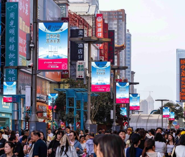 長(zhǎng)沙黃興路商業(yè)步行街智慧街區(qū)聯(lián)排路燈桿LED廣告
