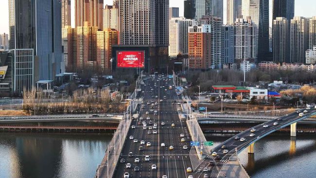 沈陽(yáng)皇朝萬(wàn)鑫LED大屏廣告1037.9㎡超大面積,高度23.64米,形成青年大街制高點(diǎn)視覺(jué)符號(hào),有效識(shí)別距離超500米。大屏正對(duì)渾河橋交通咽喉,車輛紅燈等待時(shí)長(zhǎng)60秒+,日均曝光量超100萬(wàn)次。同步覆蓋青年大街雙向車流與渾河兩岸行人,作為青年大街入口“南大門”唯一超千平米LED大屏,其地理壟斷性與歷史認(rèn)知度形成稀缺曝光資源,尤其適合品牌戰(zhàn)略級(jí)形象發(fā)布。