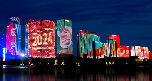 杭州錢(qián)江新城燈光秀樓體LED大屏廣告